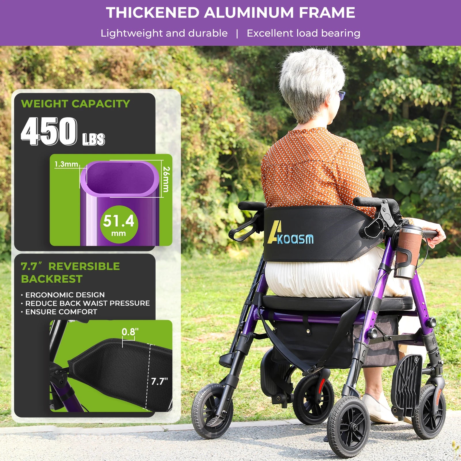 - You get a 450 lb load capacity and a reinforced aluminum frame with 8" non-pneumatic tires, delivering stable progress on hardwood, carpet, gravel, and grass with smooth shock absorption.