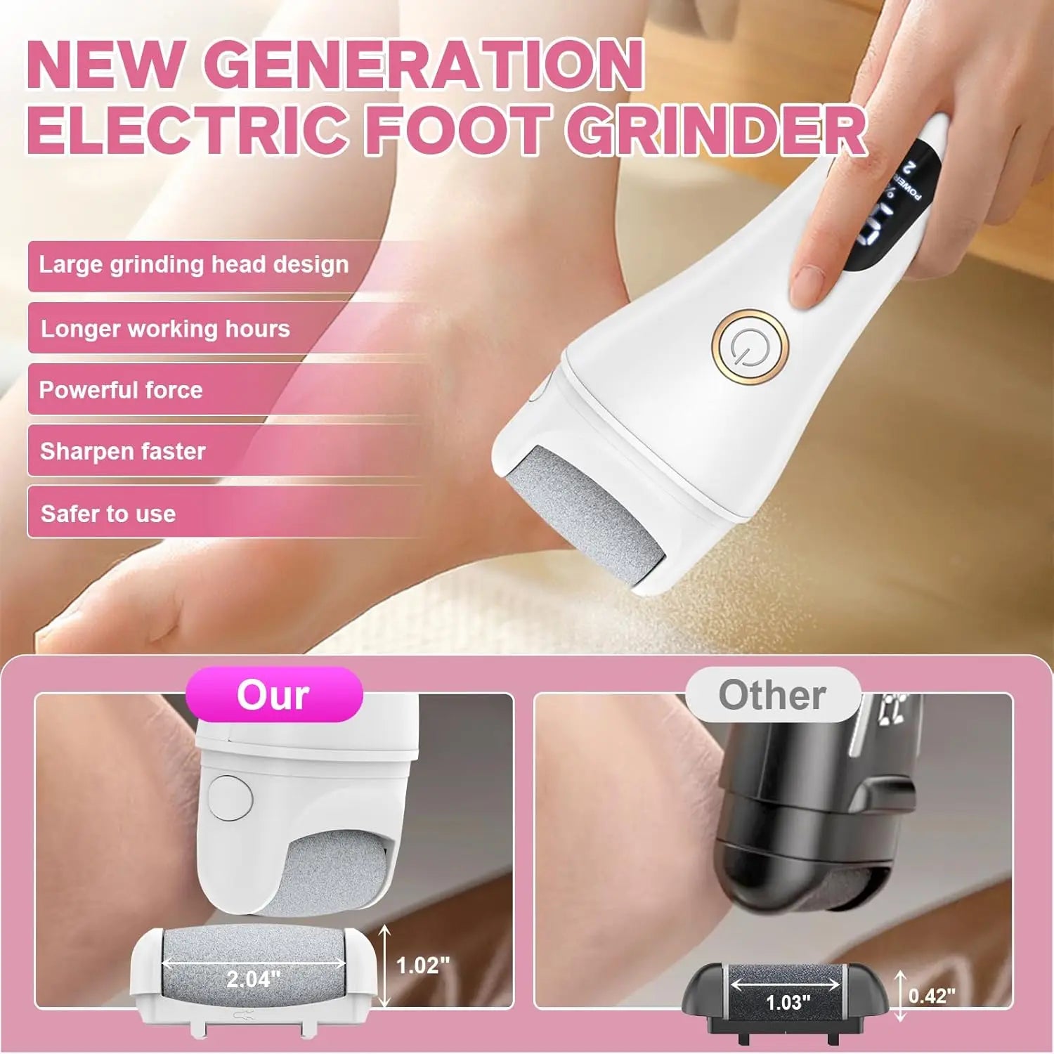 - Powerful, quick-charge battery: 1200mAh, USB charge in 1–2 hours, about 180 minutes of use; LCD displays speed and battery status for hassle-free pedicures.